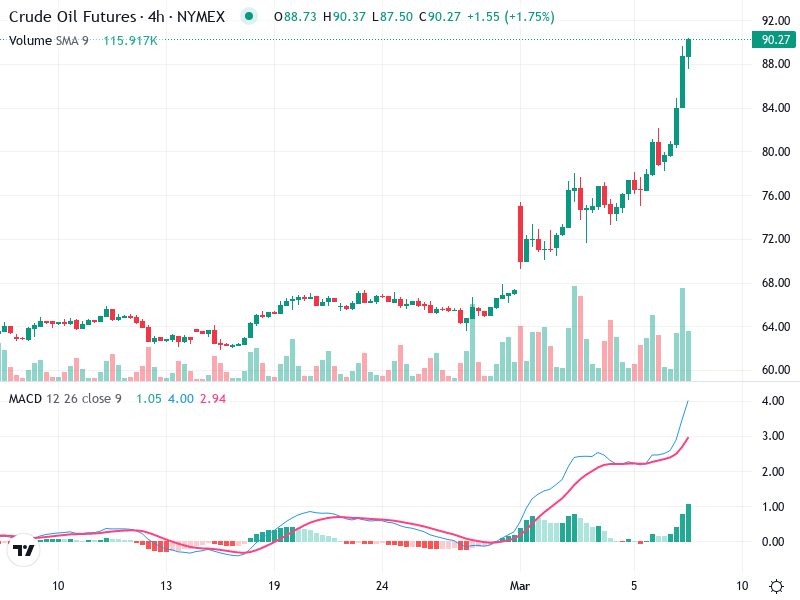 The MACD line is above the Signal line, indicating continued bullish momentum. However, they are converging, which might suggest weakening momentum.