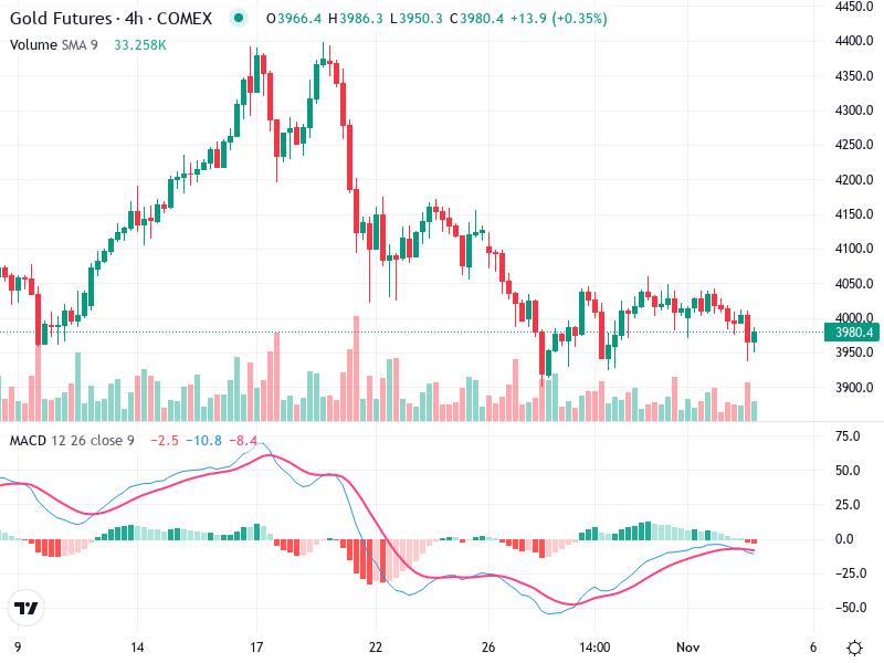Watch for a breakout above the recent consolidation highs near 4000 for a potential bullish move or a breakdown below 3950 for further bearish action.