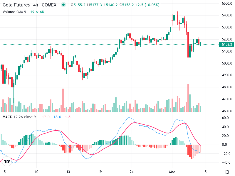 The histogram shows tiny positive bars indicating the possibility of a bullish turnaround, though not strong.
