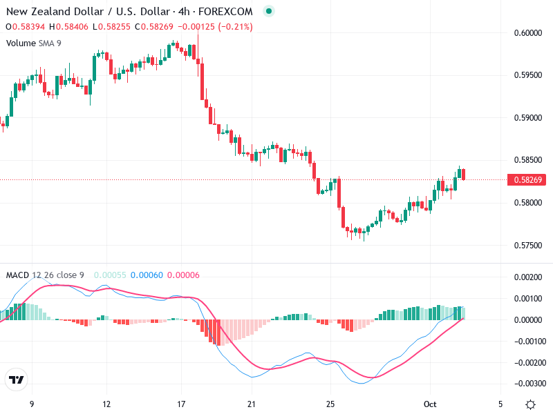 The price is approaching a resistance level around 0.5850, which, if broken, could lead to further upward movement.
