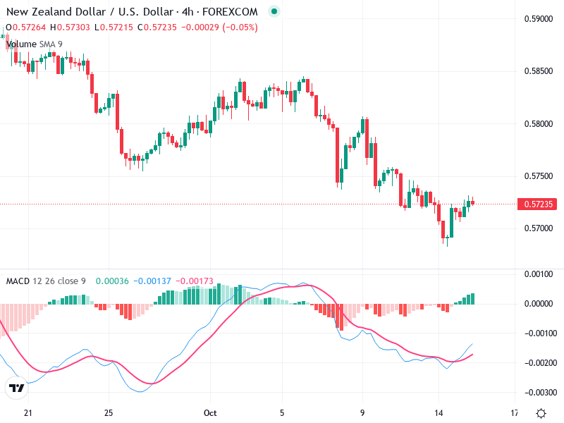 Look for bearish cues near resistance levels around 0.5750-0.5800 for potential short positions if the MACD crosses back down.