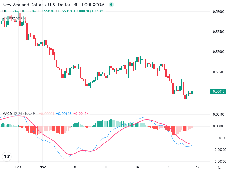 A bullish MACD crossover with a breakout above 0.56500 may signal a buy opportunity.