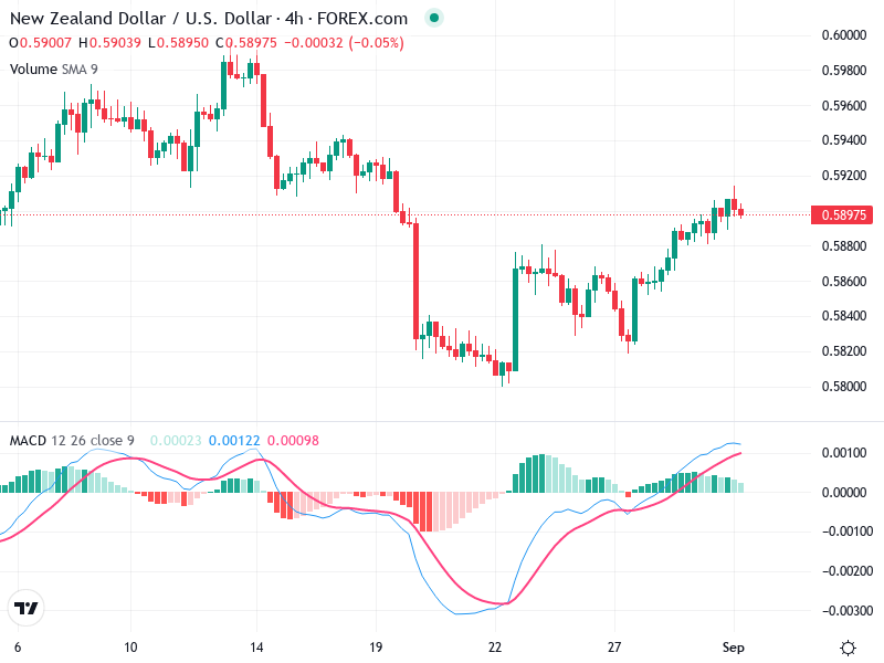 Immediate resistance is at 0.5900. A break above this could potentially target higher levels like 0.5940.