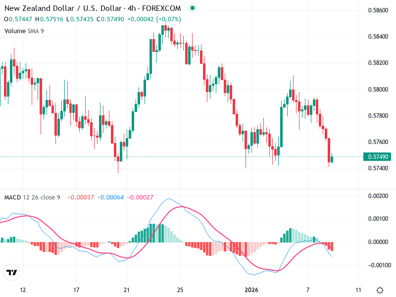 Consider selling if the price convincingly breaks below the 0.57400 support level.
