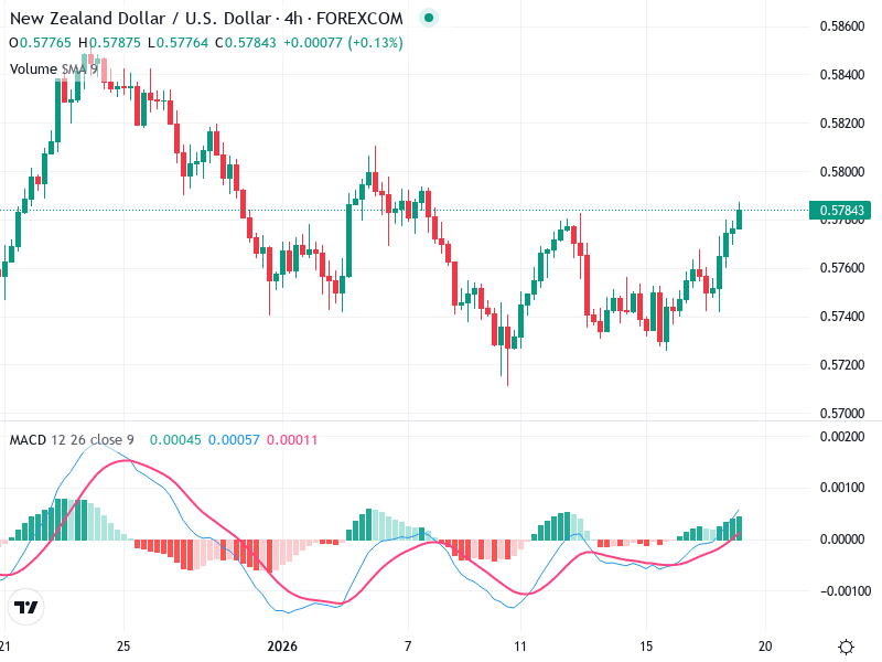 A return below 0.57600 with bearish momentum could suggest a sell strategy.