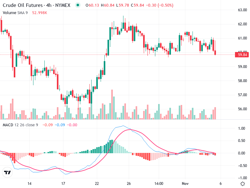 Key resistance is at approximately $61–$62, where multiple sell-offs have occurred.