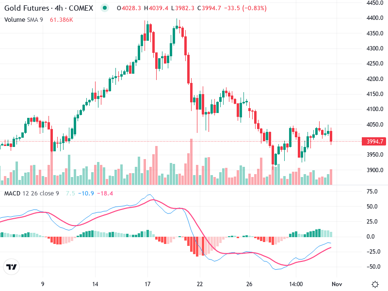 The Gold Futures (4-hour chart) is demonstrating a technical landscape characterized by recent retracements and sideways