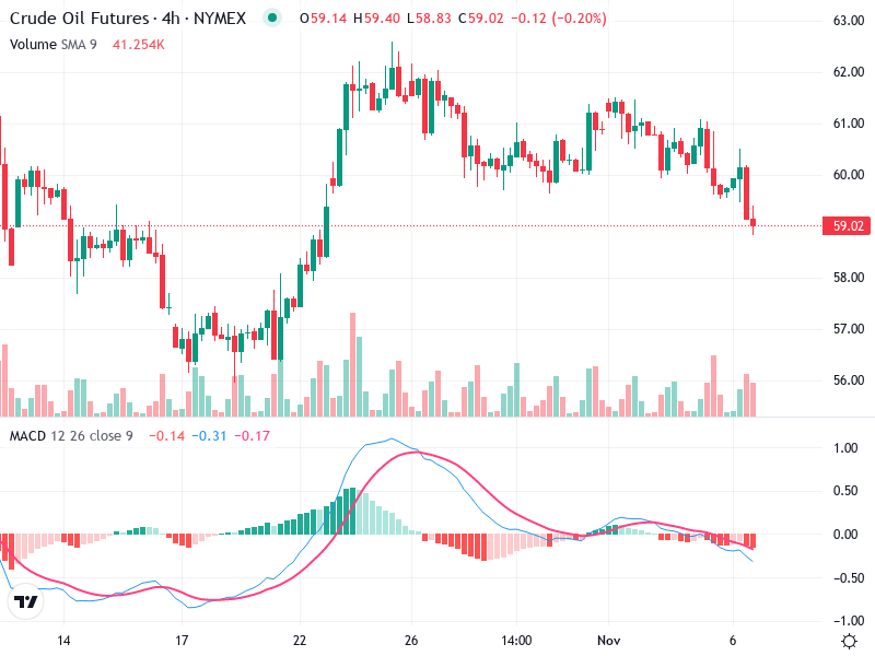 The chart analysis of Crude Oil Futures on the 4-hour timeframe reveals a recent bullish move