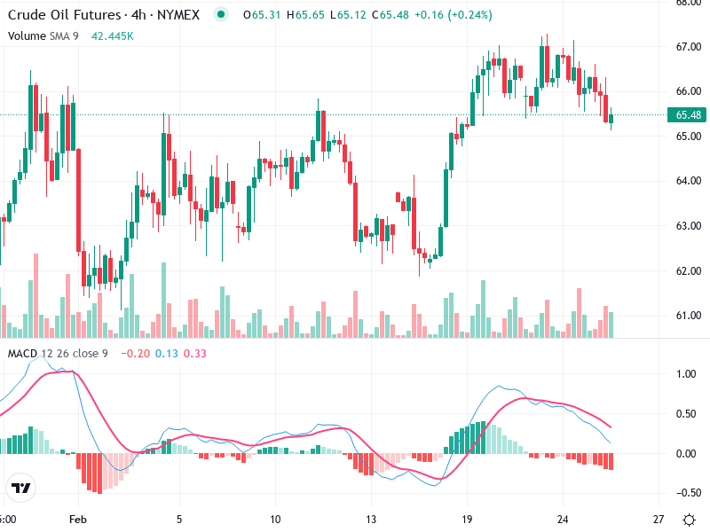 The Crude Oil Futures 4-hour chart demonstrates recent bullish momentum. Key technical indicators suggest potential upward
