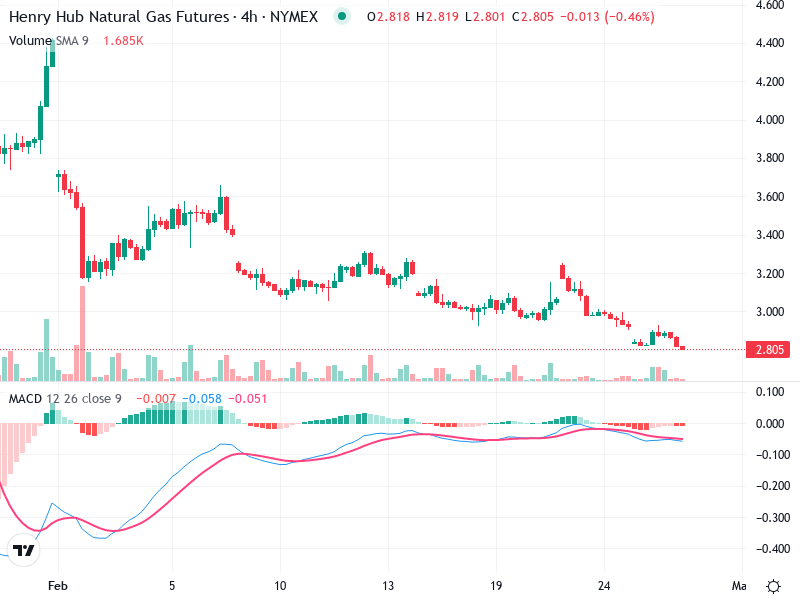 The Henry Hub Natural Gas Futures chart currently reveals a bearish trend. The asset has been