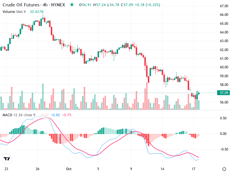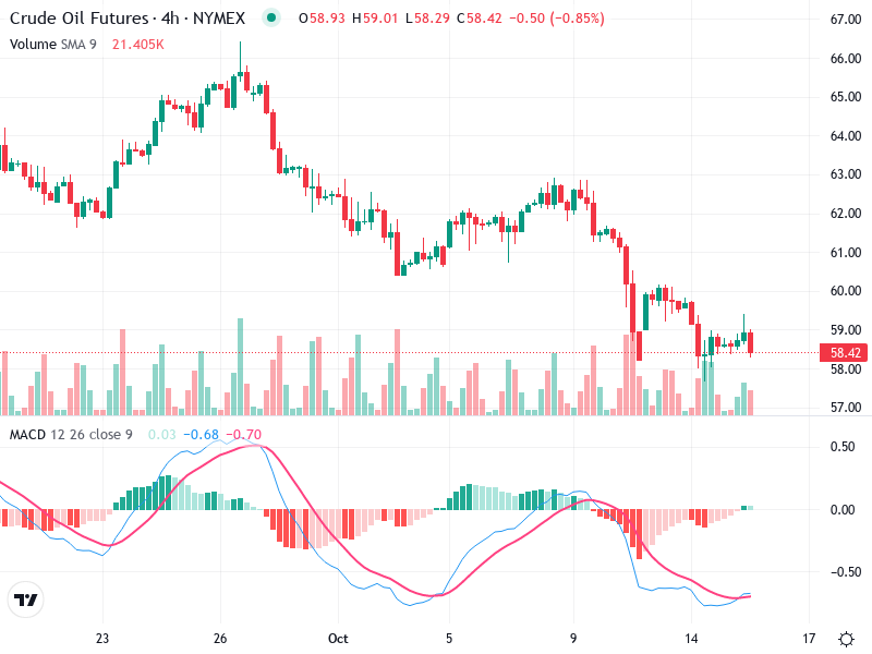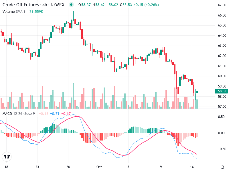The Crude Oil Futures chart indicates ongoing bearish momentum with potential stabilization visible. Traders should monitor