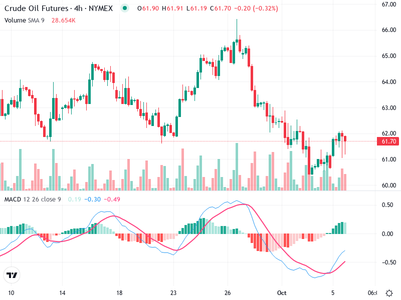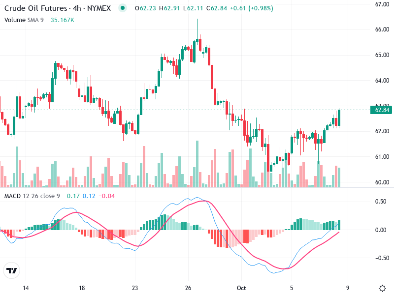 The Crude Oil Futures chart indicates potential changes with notable patterns and signals. Recent formations show