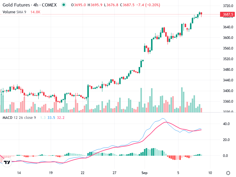 The analysis of the 4-hour chart for Gold Futures reveals nuanced insights into recent market dynamics.