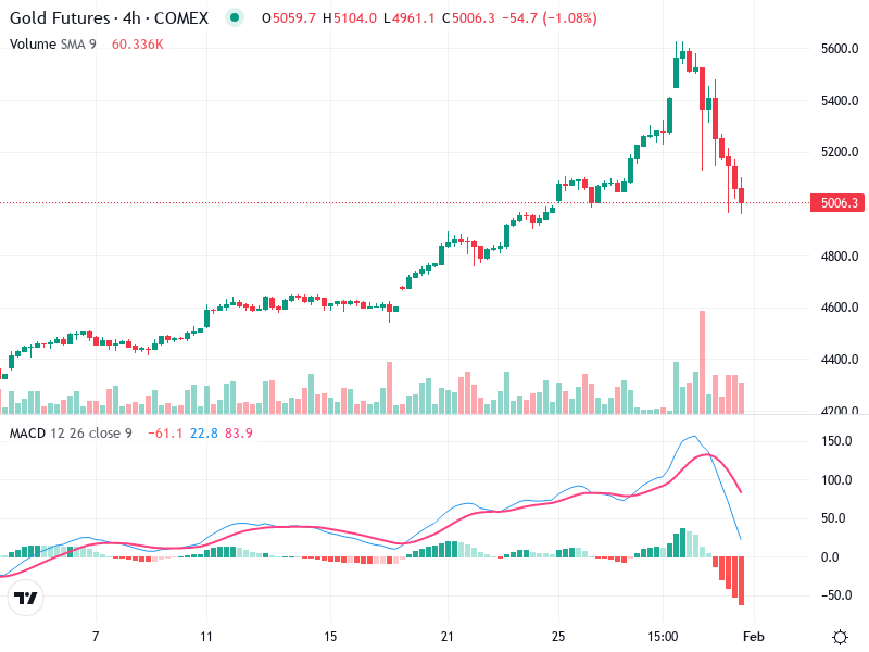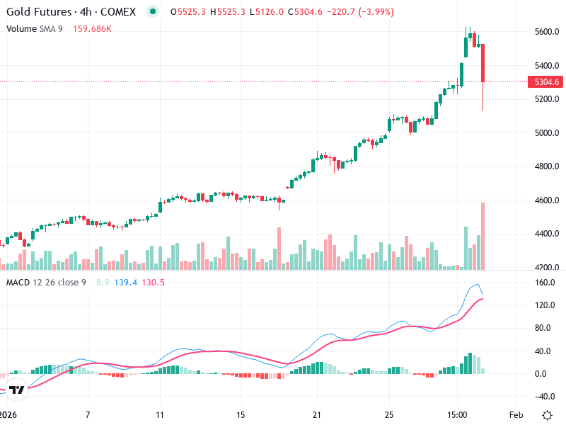 The chart for Gold Futures shows a strong uptrend with potential signs of consolidation. The asset