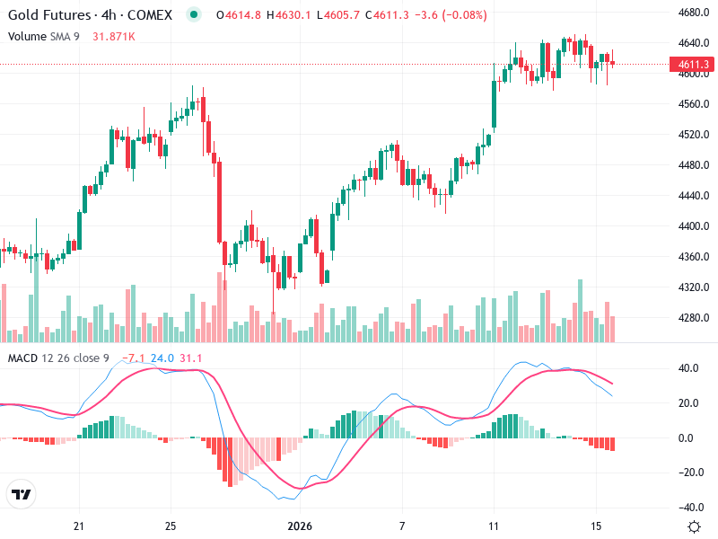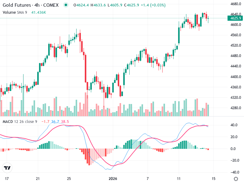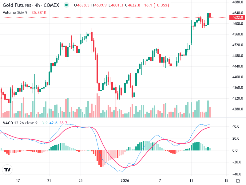The Gold Futures 4-hour chart reveals significant patterns and trends. A bullish outlook is supported by