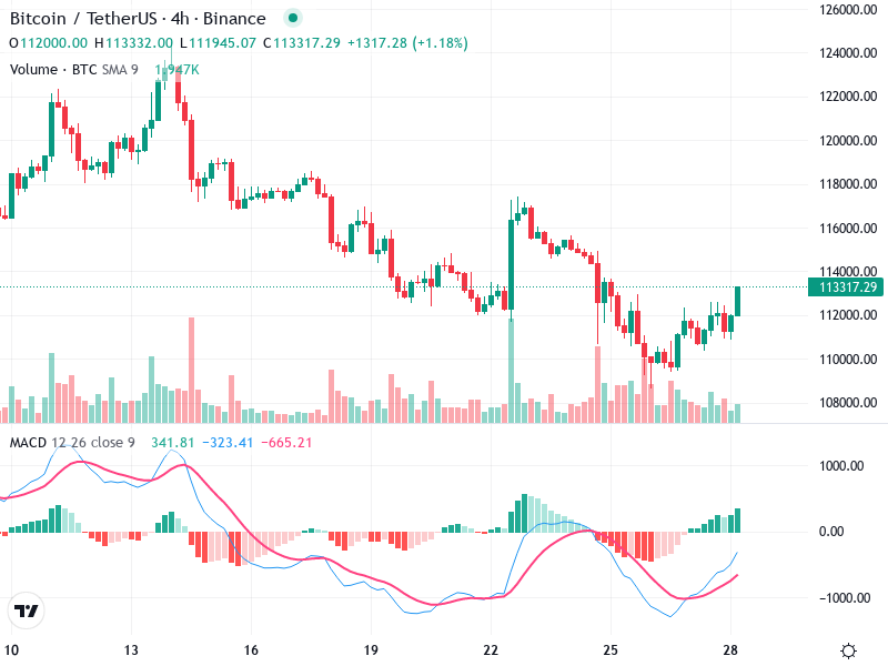 The 4-hour chart for Bitcoin/TetherUS shows a changing market sentiment. Recent candlestick formations reveal a potential