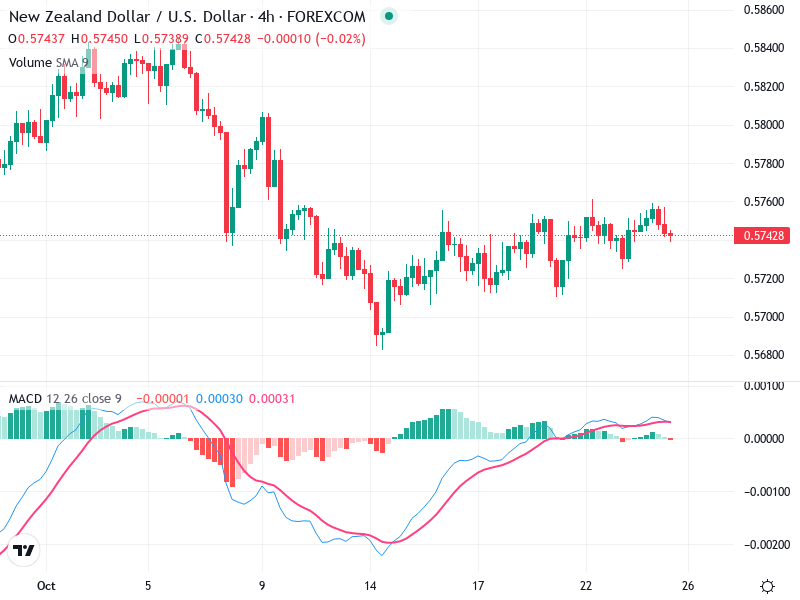 The NZD/USD chart is currently showcasing a transition from a previous bearish trend into a more