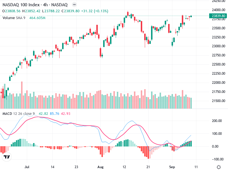 The NASDAQ 100 Index is exhibiting bullish momentum on the 4-hour chart. Recent analysis shows a
